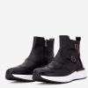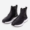 Crafted from 100% genuine calf leather, the black upper combines smooth and pebbled textures, elevating the boot’s sleek and sophisticated appeal. -