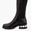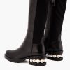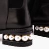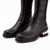 Pearl-Embellished Heel: The bold block heel is adorned with oversized pearl accents, offering a sophisticated, fashion-forward statement.