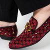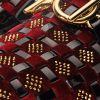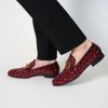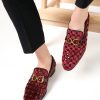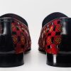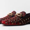 The exterior is a masterpiece of design, showcasing a meticulous blend of patent and suede leather, hand-woven to perfection. Adorning the shoe are carefully placed handcrafted gold-tone stones, adding a touch of opulence and individuality to this unique piece.