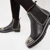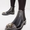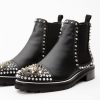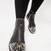 - Distinctive gold and silver spikes scattered on the toe of the boot add a bold and edgy flair, making a statement.