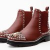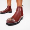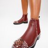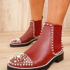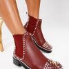 Vuvulane Burgundy Spike Leather Ankle Women Boot