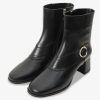 Windsor Black Leather Block Heel Women’s Mid Calf Boot
