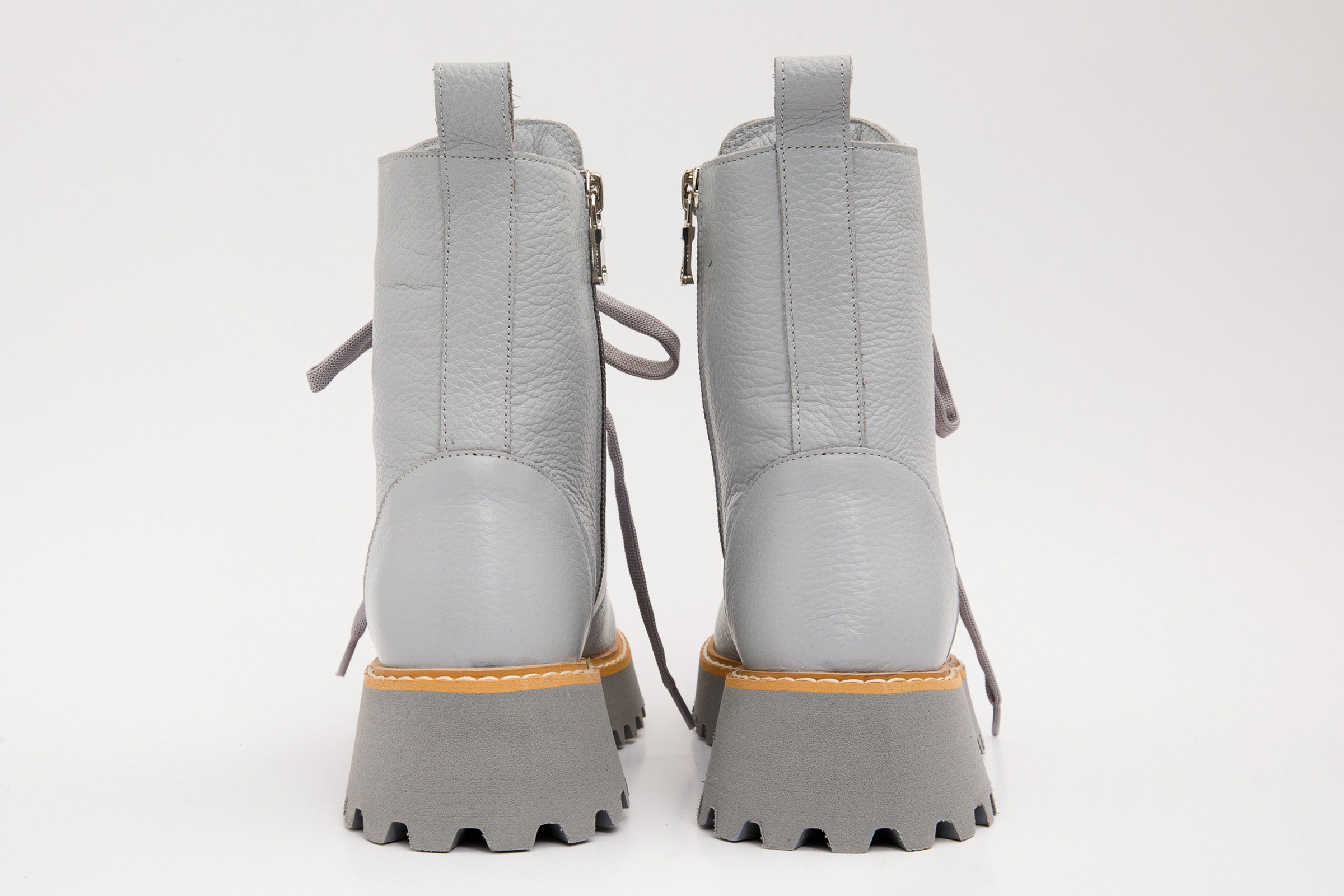 - Elevate your fashion with the Yildiz Grey Leather Lace-Up Ankle Boot, meticulously handcrafted from 100% premium-grade leather for a touch of refinement.