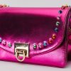 Caris Fuchsia Leather Handbag: Vibrant Elegance with Multicolor Spike Accents