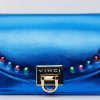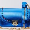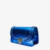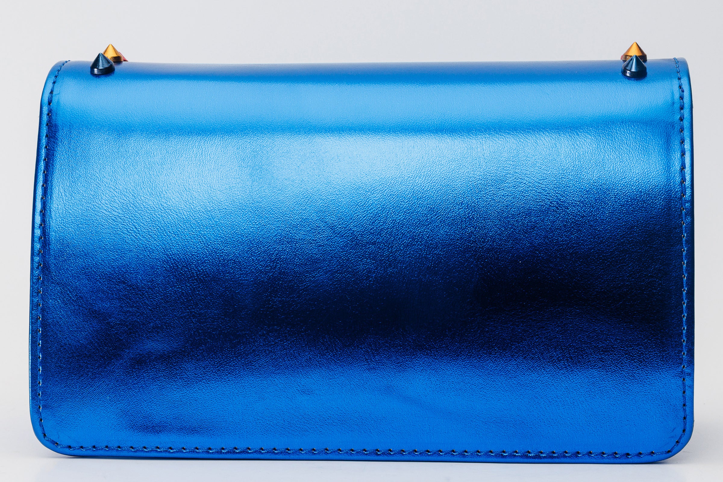 Effortless Sophistication: Caris Sax Blue Leather Handbag invites you to indulge in supreme craftsmanship and vibrant spike accents, creating a piece that effortlessly blends luxury with a rebellious edge.