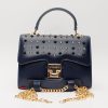 Artistic Spike Embellishments: The flap boasts meticulously placed navy blue and gold spikes, creating an artistic arrangement that adds a daring and opulent edge, making a powerful fashion statement.