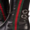- Features a bold green and red stripe running along the side, adding a distinctive high-fashion touch.