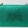 Timeless Elegance: Maple Green Metallic Leather Handbag invites you to indulge in supreme craftsmanship and a lush metallic finish, creating a piece that effortlessly complements your style with sophistication. Note: The golden chain strap is detachable for versatile styling options.