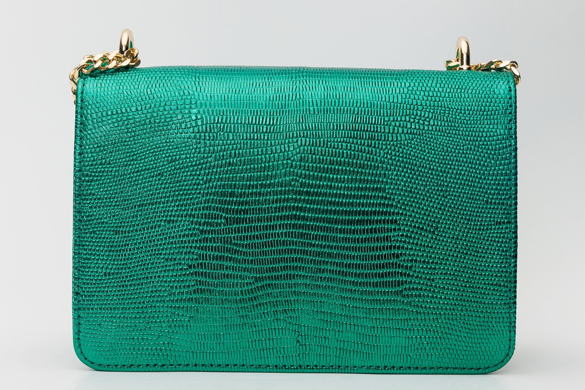Chic Inner Lining: Revel in sophistication with a chic inner lining that complements the metallic green leather exterior, adding an extra layer of refinement to your ensemble.