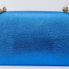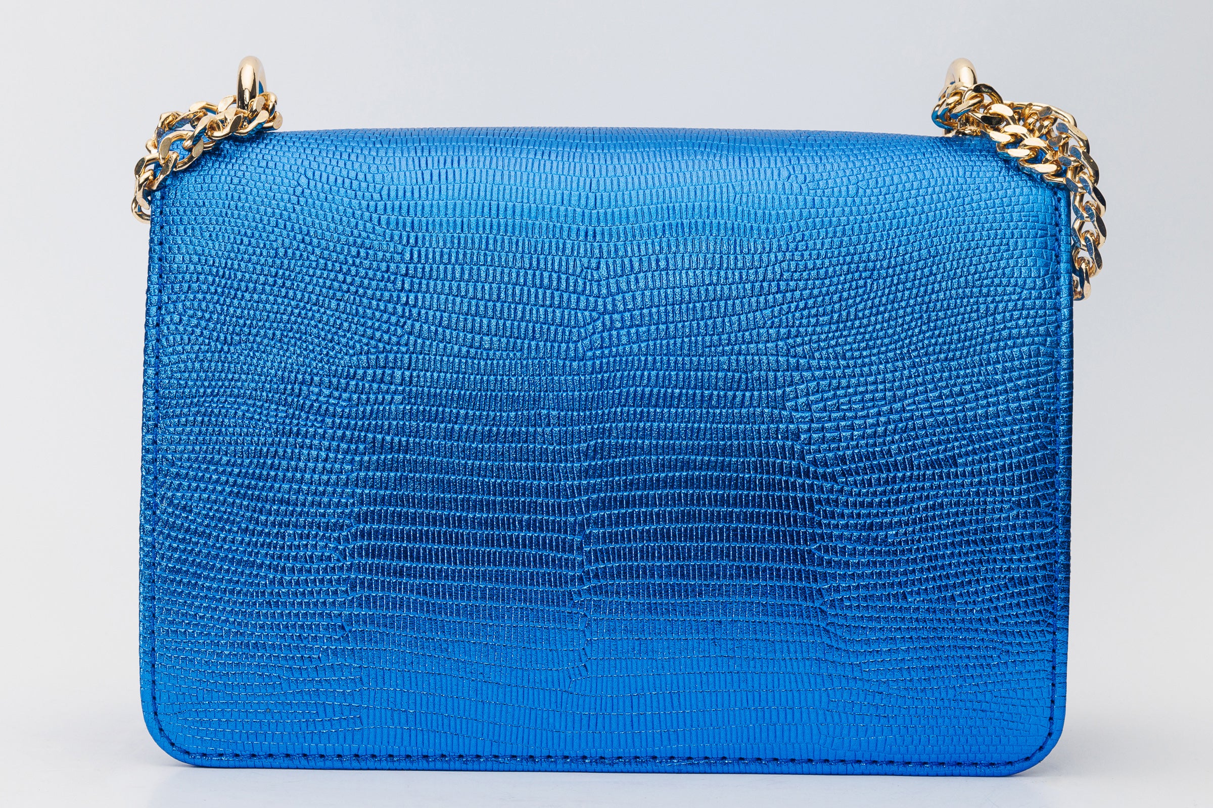 Chic Inner Lining: Revel in sophistication with a chic inner lining that complements the metallic sax blue leather exterior, adding an extra layer of refinement to your ensemble.