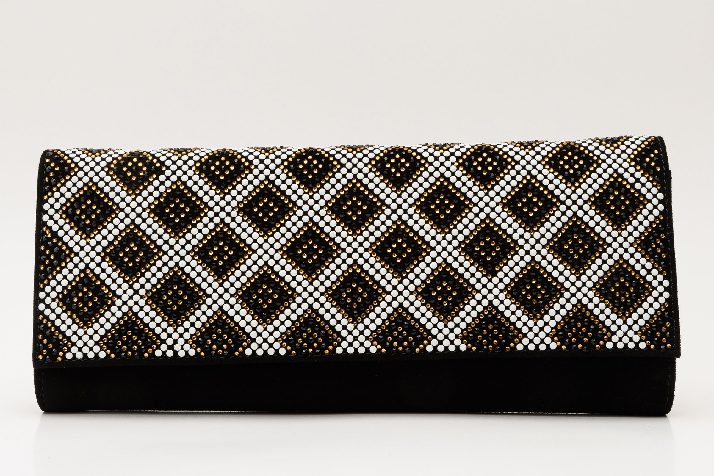 2. Handcrafted Gold, White, and Stone Embellishments: Adorned with carefully handcrafted gold, white, and stone embellishments, the clutch exudes opulence, creating a captivating focal point that complements your glamorous ensemble.