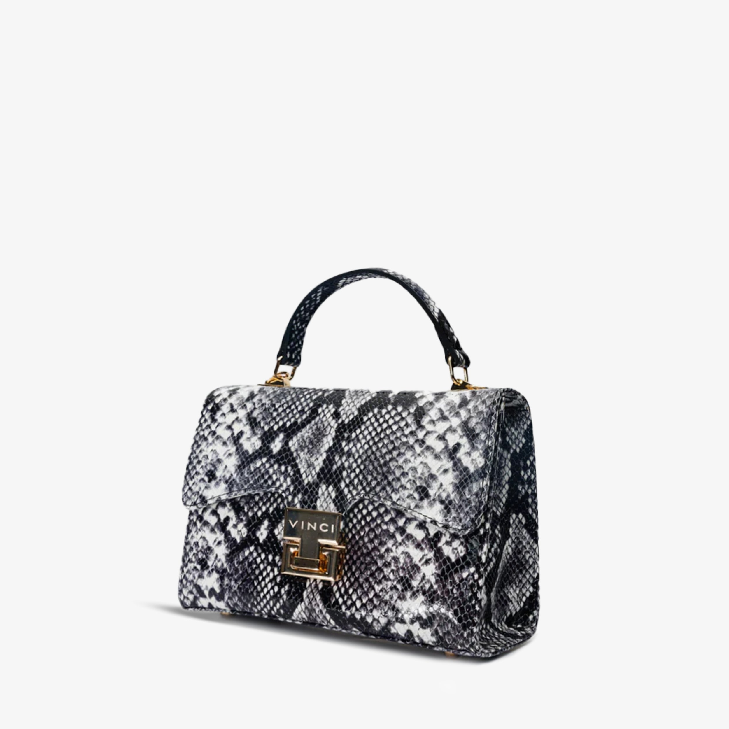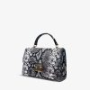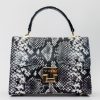Artful Python Print Design: Immerse yourself in sophistication with this handbag, meticulously crafted from 100% genuine calf leather, featuring an intricate python print design that seamlessly blends black and white hues for a timeless and eye-catching appeal.
