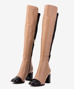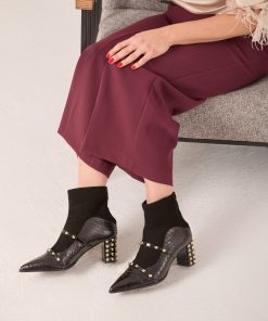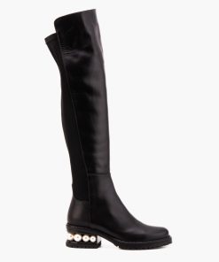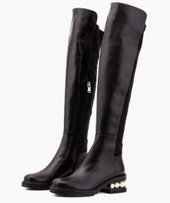 Vinci Leather Shoes The Valeria Pearl Heel Knee-high Women Black Leather Boot | Women’s Shoes