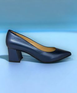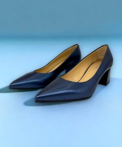 Vinci Leather Shoes Women’s The Lexie Navy Blue Leather Bloch Heel Pump Shoe Final Sale! | Navy Blue